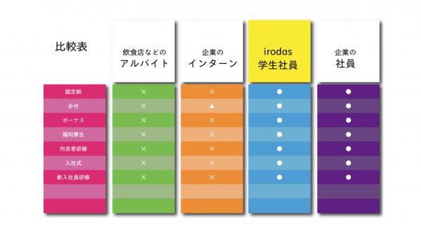 学生社員は、他のアルバイトやインターンと違い「学生の自己実現」に焦点を当てたシステムです。
