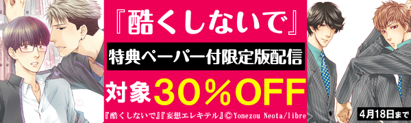 期間中「酷くしないで」「酷くしないでplus+」の特典ペーパー付限定版を配信し、全対象作品30%offキャンペーンを実施します。