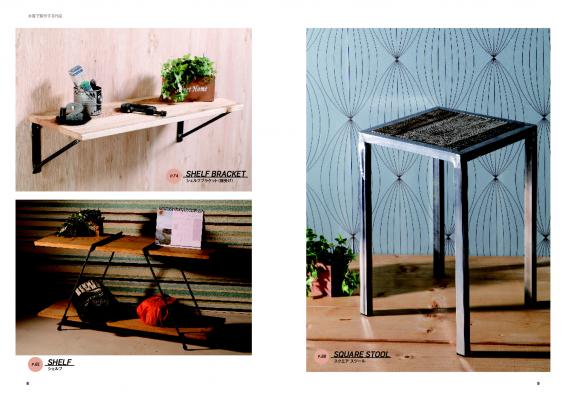 ネームプレート1、ネームプレート2、フック、ドアノブ、ペーパー&タオルホルダー、ポットスタンド、ブックエンド、棚受け、シェルフ、角スチール、丸スツール、コートハンガー