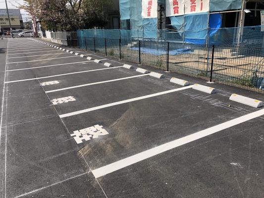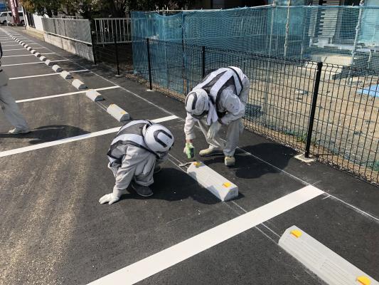 今回の駐車場ライン、マーク施工、パーキングブロック施工は、