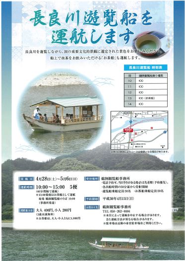 清流長良川を遊覧しながら、国の重要文化的景観に選定された景色をお楽しみください。船上で抹茶をお召し上がりいただける「お茶船」も運航いたします。