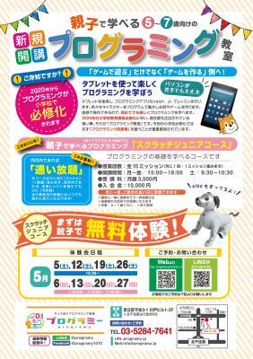 2020年度のプログラミング教育必修化にあたり、幼児期よりプログラミング教育を受けさせたいという多くの需要を受け、東京都足立区の「北千住」に2018年3月に新規開校したキッズ向けプログラミング教室「プログラミー(http://programy.jp/)」はレギュラークラスである小学生向けコース
