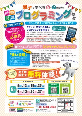 2020年度のプログラミング教育必修化にあたり、幼児期よりプログラミング教育を受けさせたいという多くの需要を受け、東京都足立区の「北千住」に2018年3月に新規開校したキッズ向けプログラミング教室「プログラミー(http://programy.jp/)」はレギュラークラスである小学生向けコース