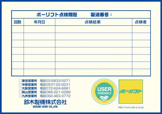 鈴木製機株式会社が「ポーリフト点検シール」導入を開始