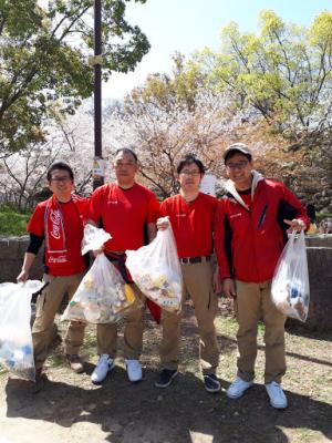 清掃活動を行ったのは関西支部のスタッフ4名。花見スペース内の植え込みや沿道などに落ちているゴミを1日かけて回収し、75リットルゴミ袋4袋分のゴミを拾いました。