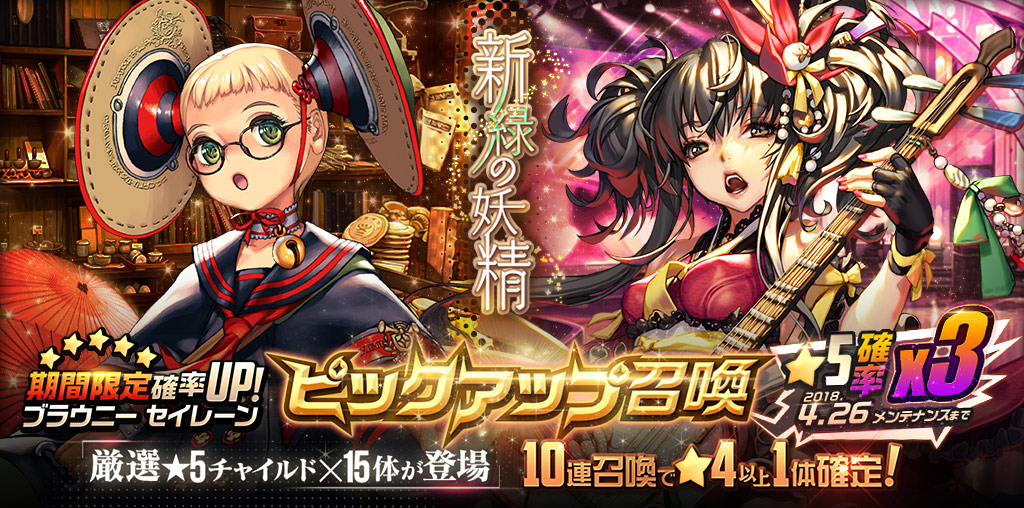 どんな情報でも取り扱ってます!数多の補助効果を持つ新追加チャイルド補助型★5「ブラウニー」(CV:ニーコ)と、スキル強化を完了した攻撃型★5「セイレーン」(CV:洲崎綾)がピックアップ召喚15体の中でもさらに召喚確率UPで登場!!