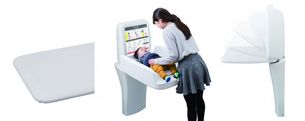 ■特長 : おむつ交換台が設置される空間は、地下鉄のトイレやショッピングモールの授乳室など場所によって内装のデザイン性に幅があることから、シンプルで扱いやすい造形を基本コンセプトに、面の境界を際立たせつつ局部的な膨らみを持たせることで、「柔らかさ」と「硬さ」を兼ね備えた「やわらかたいカタチ」をデザインに取り入れました。