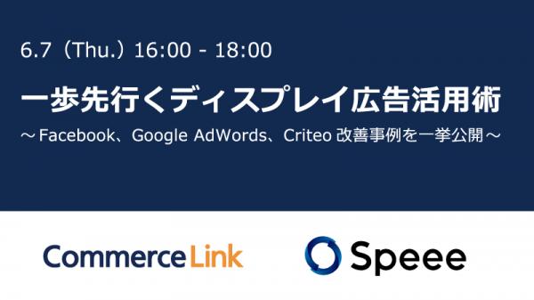 ECサイトの集客・売上拡大を支援するコマースリンク株式会社(本社:東京都大田区、代表取締役社長:藤田 由希子)は、株式会社Speee(本社:東京都港区、代表取締役:大塚 英樹)と共催で『一歩先行くディスプレイ広告活用術』と題した広告運用セミナーを2018年6月7日(木)に開催します。