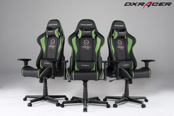 背もたれ前後には、高精度な縫製とプリント転写による『SCARZ』のチームロゴを配置。イメージカラーの鮮やかなグリーンとレッドのカラーリングにより、『SCARZ』の世界観を表現した『DXRACER』と『SCARZ』によるコラボレーションモデルです。
