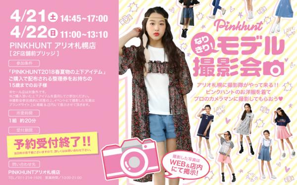 キッズ服ブランドBABYDOLL(ベビードール)が運営するジュニアガールズブランドPINKHUNT(ピンクハント)が、PINKHUNTアリオ札幌店にて「なりきり!モデル撮影会」を開催します。