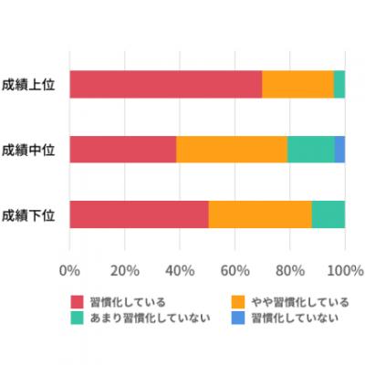 家庭学習が習慣化しているかについて、成績位置別に質問してみました。