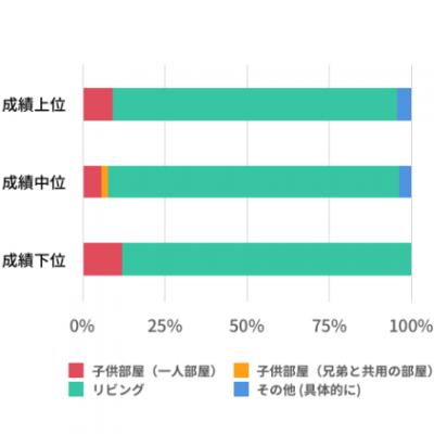 成績に拘わらず、ほとんどのご家庭が「リビング」をお子さんの勉強場所としている結果になりました。