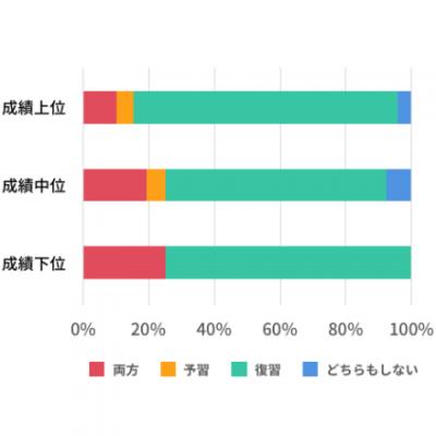 ただ、成績上位のご家庭は「塾の復習」を重視しているという方が「学校の復習」の倍近くいらっしゃいました。