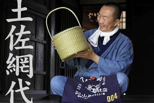 買い物かごとしてはもちろん、おしゃれなストッカーとして雑誌や新聞などの収納にも使える土佐網代丸手提げ籠。竹細工の分野は高齢化が進み、技術を受け継ぐ後継者も減少しているのが現状です。土佐網代やえび止めなど、失われつつある地域伝統の技術を一つでも多く後世に伝えていきたいと考えています。