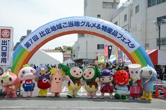 会場では、埼玉県の中央に位置する比企地域(東松山市、滑川町、嵐山町、川島町、吉見町、鳩山町、東秩父村)のほか宮城県東松島市や(株)丸広百貨店からもご当地グルメや特産品の販売が行われます。また、吉本芸人ボヨンボヨンをMCとしたステージイベントや埼玉西武ライオンズ球団マスコット「レオ&ライナ」も登場します。