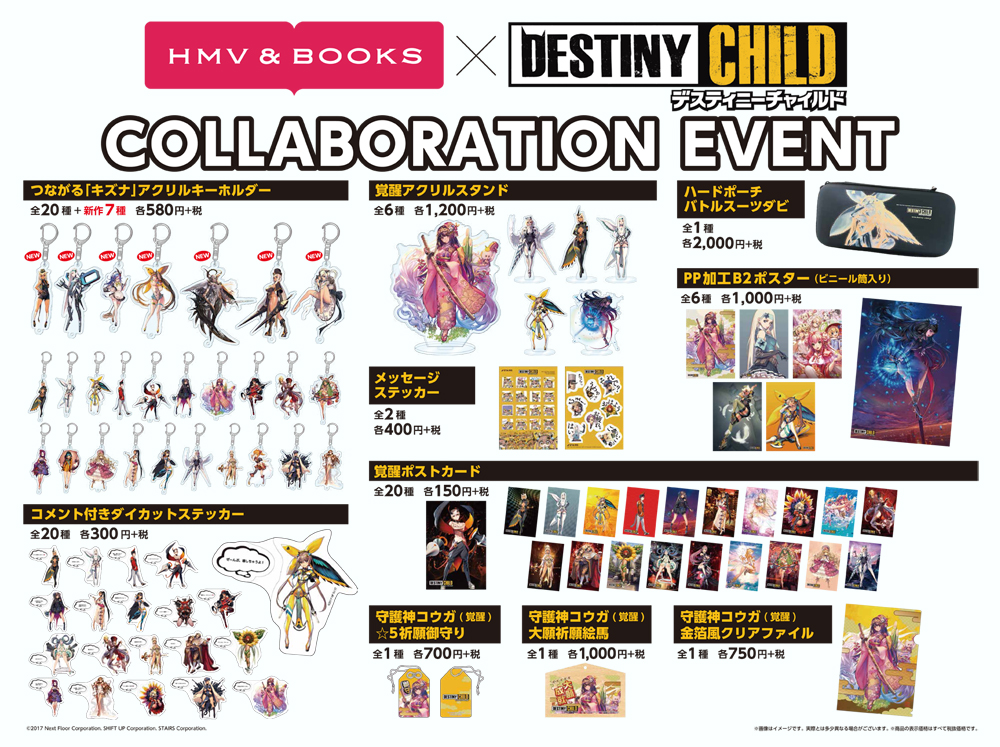 今回のコラボイベントに合わせて製作された新作グッズも登場するほか、関連商品を税抜き2,000円以上お買い上げの方、先着500名に「デスティニーチャイルド アートブック(非売品)」をプレゼント!