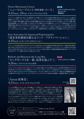 「ニューロムーブメントコース(1/2)※1」9:00~16:30(休憩12:30-14:00)料金:89,000円
