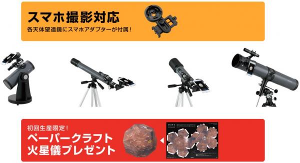 今回発売する4機種の天体望遠鏡は、初回生産限定で火星儀がつく特典があり、火星をより立体的に把握することができます。