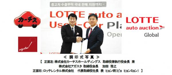 今般、株式会社カーチスホールディングスの子会社である株式会社アガスタ(本社:東京都千代田区紀尾井町4番1号 取締役会長 加畑雅之)は、ロッテレンタル株式会社代表取締役 表 ヒョン明(ピョ ヒョンミョン)氏、並びにロッテレンタル株式会社の役員、また今回このサイトに申し込みをするロッテレンタルオークションの取引先を招待し、ロッテレンタルオークション会場にて盛大なオープンセレモニー式を4月23日に開催。既に3月23日に業務提携契約は締結されているが、これにより世界最大のNo1Worldwide Car Market「PicknBuy24.com」が正式にスタートしました。