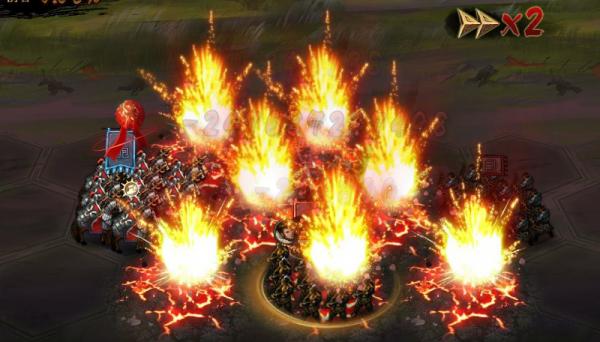 ランダムに溶岩火山7つ召喚し、目標を305%のダメージを与えると同時に、地面に炎を残し、炎の中にいる部隊に180%のダメージを与える。効果は2ラウンド持続し、15%の確率で1ラウンドの間目眩状態にさせる。
