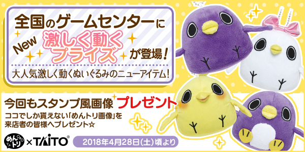 大好評頂いております、「めんトリ」プライズ。第22弾には、あの「激しく動く!?」シリーズに仲間が増えてリニューアル登場!これまではめんトリとヒデヨシのみがこのシリーズに登場していましたが、なんとファンからの要望にお応えしてイモウトとぺんぐいんも激しく動く!!