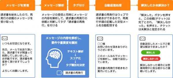 あらかじめ分類したいメッセージの内容を登録し学習させることで、AIでメッセージの用件を読み取り、用件の内容に合わせてタグ付けします。