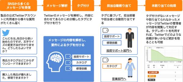 ■FacebookやTwitterのメッセージ内容を分析して担当者へ割り当て