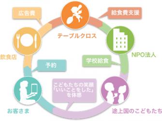 お客様が飲食店の予約をすると、予約した人数に応じた給食が途上国のこどもたちに届く、という社会貢献ができるグルメアプリです。「自分の予約が、誰かのためになる」という画期的なサービスで、「チャリティ予約」と呼ばれています。アプリは30万DLを越え、加盟店数は約6,000店舗、累計給食支援数は10万食を突破。お客さま、飲食店さまの双方からの支持によって、活動が広がっていると同時に、2018年だけでも日経新聞やNHKBS1など、各メディアにも取り上げられている、いま注目のベンチャー会社です。