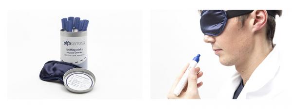 嗅覚試験のための「パネル選定用スニッフィングスティック」は、5種類の基準臭と1つのリファレンス (無臭)をそれぞれ直接嗅ぎやすいスティック形状にしたもので、パネル選定試験に簡単に提供できます。 アイマスク、試験手順書が同梱され、約6ヶ月間の使用が可能です。ラインアップには、臭気強度の訓練用、および100種類以上の異なるにおいの質を用意しており、対象物に応じて選択が可能です。スニッフィングスティックは、車室内臭気試験 ISO 12219-7:2017 に準拠しています。