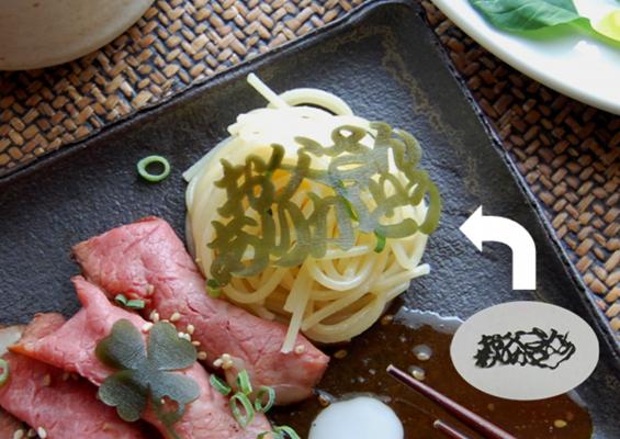 【彩り昆布〈お父さんありがとう〉】は、5分ほど水でもどすと「お父さんありがとう」という文字に早変わり!父の日のお料理や焼酎の水割りに入れて。日頃の感謝の気持ちを伝えるお手伝いをする昆布です。