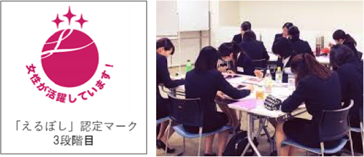 「えるぼし」とは、厚生労働省認定する女性活躍推進法に基づくマークです。「L」には、Lady(女性)、Labour(働く、取り組む)、Lead(手本)などさまざまな意味があり、「円」は企業や社会、「L」はエレガントに力強く活躍する女性をイメージしています。認定は3段階*1あり、当社は最上位の3段階目に認定されました。認定されるには、「女性の職業生活における活躍の状況に関する実績に係る基準」の5つの項目*2全てを満たし、その実績を厚生労働省のウェブサイトに毎年公表していることが条件です。