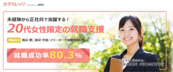 「女子カレッジ」とは、20代の女性向け就職活動支援サービスです。2013年12月より開始し、1,000人以上の女性の就職支援活動を行っています。当サービスは、女性向けの営業職をはじめ、事務職や総合職などの正社員求人を、既卒・第二新卒・大学中退・フリーターなどの女性に書類選考無しで紹介します。また、プログラムを女性向けにすることをはじめ、メイク講座など女性に特化した無料の就職講座の用意や、就職後も専任のスタッフが社会人生活を支援します。