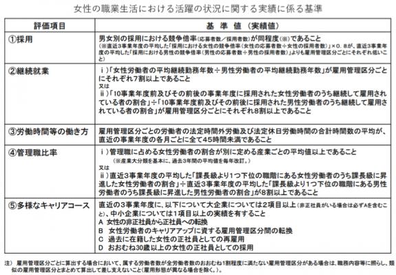 [参考]:女性の職業生活における活躍の状況に関する実績に係る基準