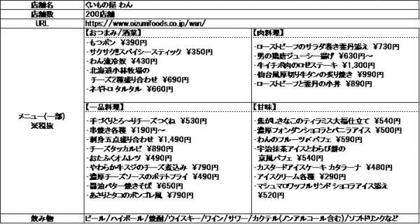 展開店舗 :「くいもの屋 わん」全200店舗