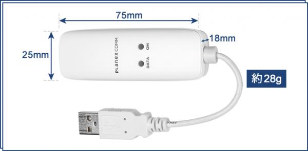 25(W)×18(H)×75(D)mm、重量約28gと小型軽量で、設置に場所を取らず、持ち運びにも便利なコンパクト設計です。