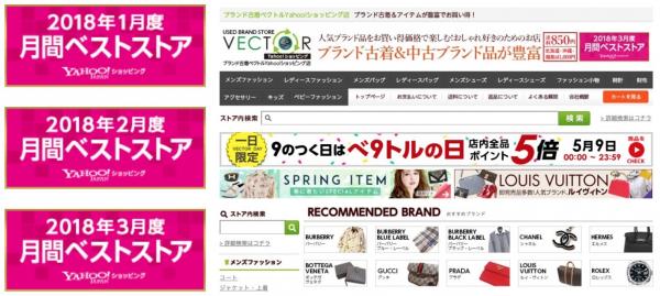 ITを活用したファッションの買取や販売を手掛ける株式会社ベクトル(本社:岡山県岡山市、代表取締役:村川智博、以下ベクトル)が運営する「ブランド古着ベクトルYahoo!ショッピング店」は、ヤフー株式会社(本社:東京都千代田区、代表取締役社長:宮坂学、以下Yahoo! JAPAN)が主催するYahoo!ショッピング「月間ベストストア」において3ヶ月連続での「月間ベストストア」に選出され、「中古アイテム賞」1位を2018年5月7日に受賞しました。