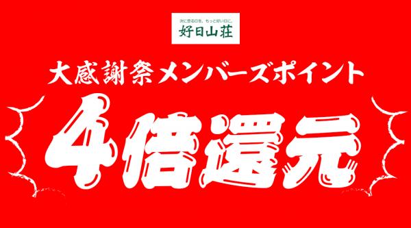 お得な4大キャンペーンに加えて、日ごろのご愛顧に感謝の気持ちを込めて、5月12日より好日山荘メンバーズポイントをお買上げ金額(税抜)の通常3%付与のところを、4倍の12%付与といたします。