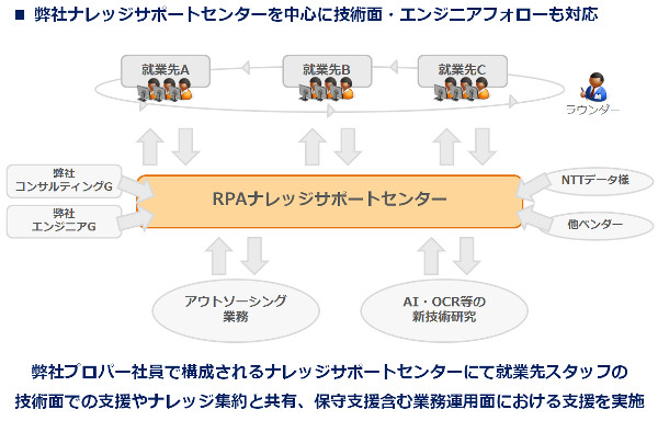 NOCでは、RPAエンジニアの提供後も、企業とエンジニア双方を支援する「RPAナレッジサポートセンター」にて、充実したサポートを提供いたします。