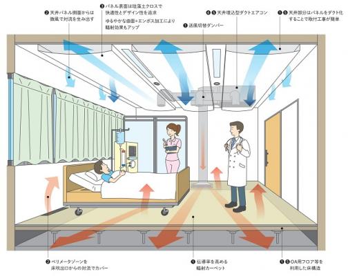 ●病院や福祉施設などで、対流が少なくホコリが舞いにくいことから、高齢者や患者さんにも快適な空間を提供