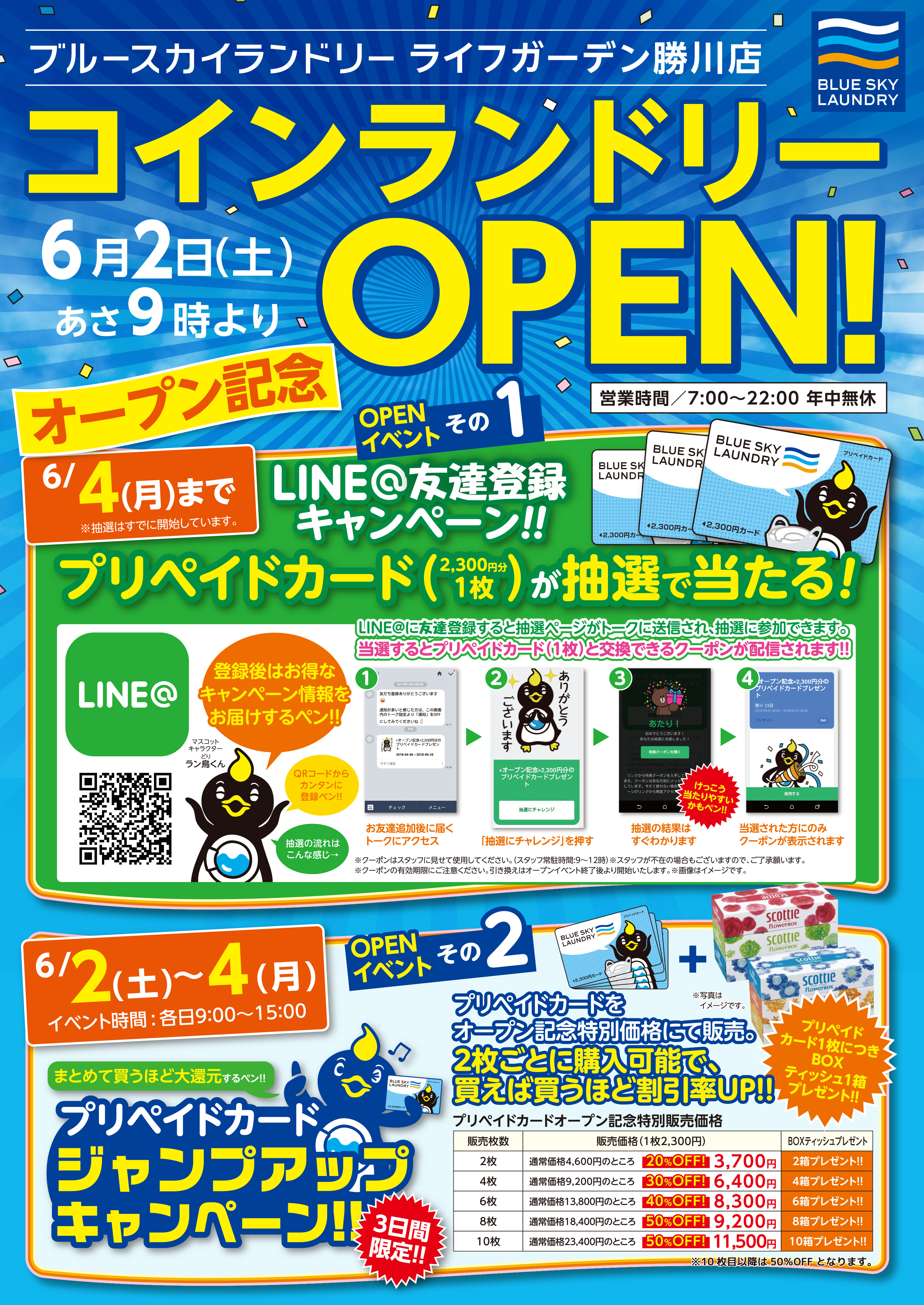 私たちブルースカイランドリーは、この度2018年6月2日(土)より愛知県春日井市のライフガーデン勝川敷地内にブルースカイランドリーライフガーデン勝川店をオープンします。ブルースカイランドリーでは、洗濯から乾燥まで全自動でできる洗濯乾燥機を導入しています。一般の洗濯機より大型なので一気にお洗濯ができ、家事の負担を軽減することができます。また、洗濯乾燥機にはドラムを洗浄する機能を搭載しており、いつでも安心・清潔にご利用いただけます。