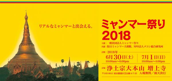 一般社団法人ミャンマー祭り(東京都江東区、代表理事:関口 照生)は、生活、伝統芸能、文化を通して、リアルなミャンマーを紹介する国内最大級の日緬文化交流イベント「ミャンマー祭り 2018」を6月30日(土)~7月1日(日)の2日間、東京の増上寺にて開催いたします。本イベントは日本とミャンマー両国の友好を深めることを目的に開催される文化交流イベントで、今年で5回目を迎えます。