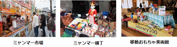 東京おもちゃ美術館の協力で、親子で遊べるエリアを用意。60畳分のスペースを使った「BOOK & TOYライブラリー」特設プレイコーナーにミャンマーの子どもたちが遊ぶおもちゃの展示や、ビルマ語(ミャンマー語)で紙芝居を実演します。(無料)