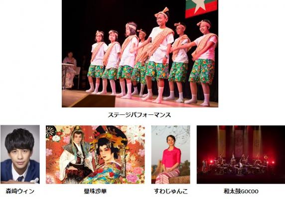 ミャンマーの民族衣装に包まれたミャンマー舞や、日本とミャンマー両国の文化交流ステージが繰り広げられます。