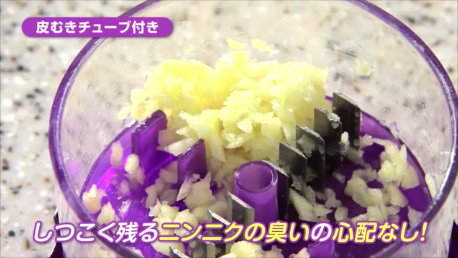 フレッシュミル・ガーリックは手にしつこく残るニオイを気にせず、にんにく料理を楽しめるガジェットです。付属のチューブでにんにくの皮をむき、そのままフレッシュミル・ガーリックを回してみじん切りにします。刻んだにんにくは中のトレイごと取り出せるので手にニオイが付きません。包丁もまな板も必要なく、一人分からにんにくのみじん切りができます。にんにく以外に、ショウガ、エシャロット、ナッツ、ペッパー、鷹の爪、ベイリーフ、ベビーフードにも使えます。