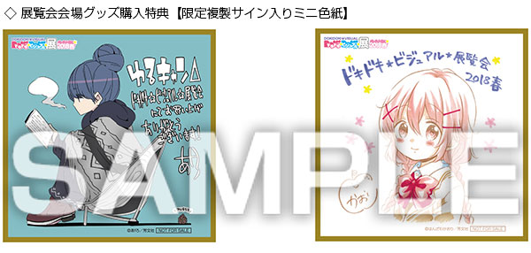 展覧会の物販会場にて、1,000円(税込)以上ご購入の方には【限定複製サイン入りミニ色紙】を1枚プレゼントいたします。加えて、同時開催「ドキドキ★ビジュアル★展覧会」開催記念キャンペーンの【限定ポストカードプレゼント】も対象となります。ぜひこの機会に合わせてご覧くださいませ。