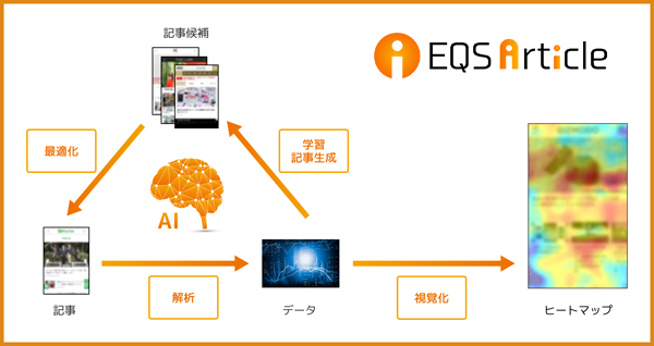 「EQS ArtIcle」は記事を主体とした広告を複数配信する中で、AIによって各記事の質を分析し学習し続けることで、最も広告効果が高まるよう自動で最適化するエンジンです。
