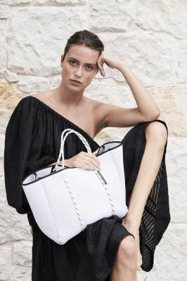 「ステート オブ エスケープ」が目指すのは、“どこかへ旅したい”という願望や、新しい世界へ踏み出したいという気持ちを、一緒に実現できるようなバッグ作り。肌当たりがよく、軽量で頑丈、水洗いでもでき折りたたむことも可能なネオプレン素材を使い、デザインと機能性にこだわったバッグがそろいます。