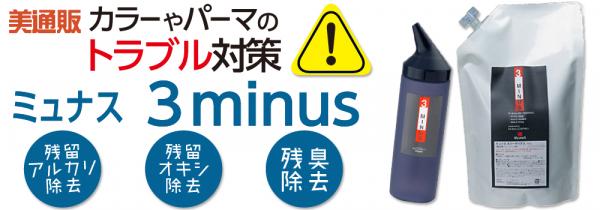 『ミュナス スリーマイナス』は、つけて流すだけでアルカリ・オキシなどの薬剤の残留を防止・除去できます。