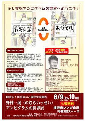 ■それらの作者であるアンビグラム作家 野村一晟氏による関東初の個展が、2018年6/9(土)~10(日)、横浜赤レンガ倉庫にて行われます。“触れられる”展示作品のほか、本人による“即興実演制作”(5~10分)が行われます。それぞれの作品の言葉に込められた想い、物事への多角的な視点、目の前で作品が作られていく過程など、全てをごゆっくりお楽しみ下さい。