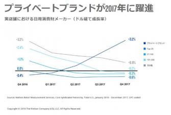2017年は米国の日用消費財メーカーにとって市場の様相が激変する1年となりました。これまでの、ナショナルブランド(NB商品)と比較すると、プライベートブランド(PB商品)は価値と品質において「安かろう、悪かろう」というネガティブなイメージを覆し、PB商品が著しい伸びを見せました。